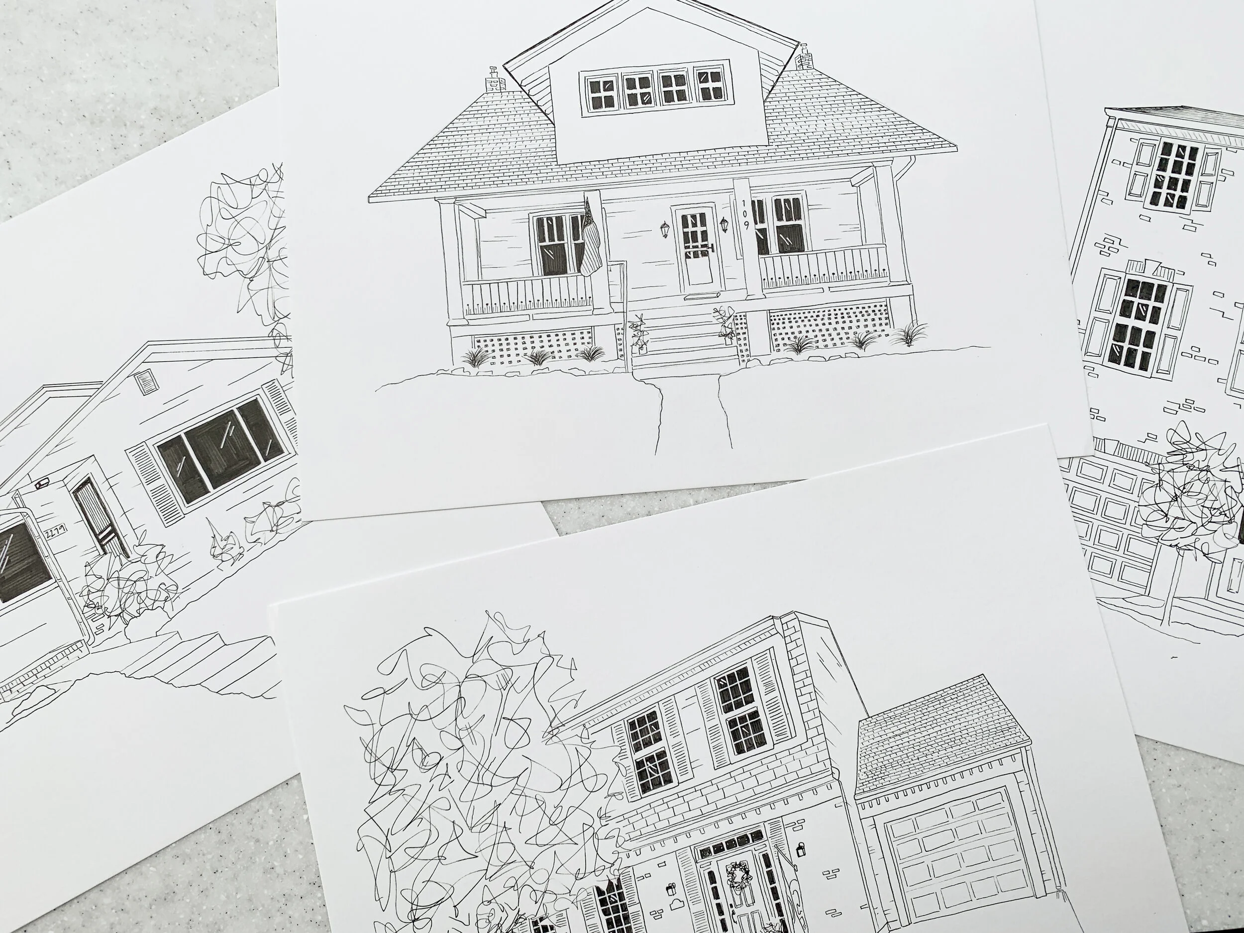 House portraits are the only custom work I am currently making. They are a perfect way to mark your significant life events. Ideal for a housewarming present, to celebrate the purchase of a first home, or preserving a wedding venue. While inking is my specialty, watercolor portraits are available for those who love a little color.
