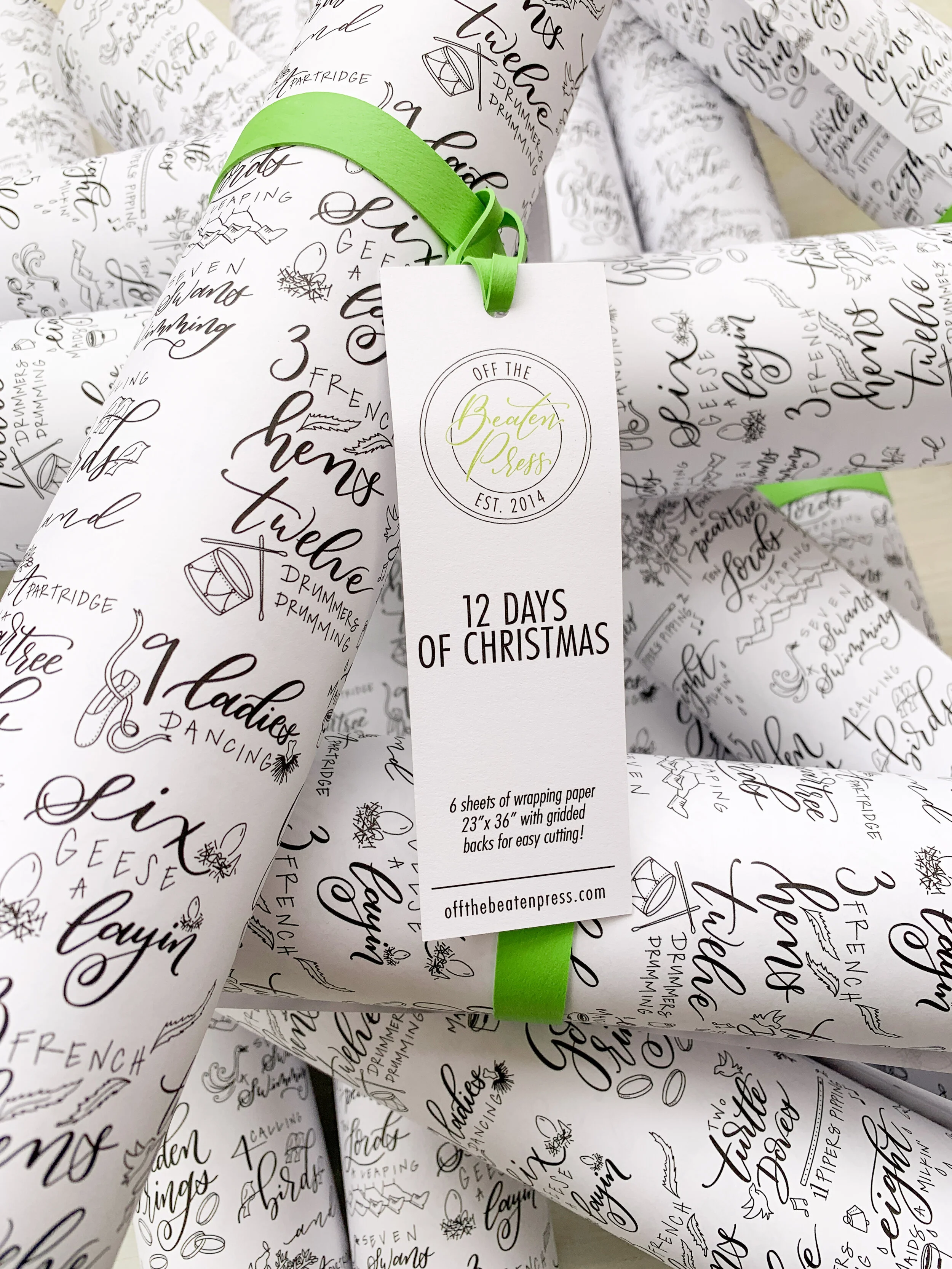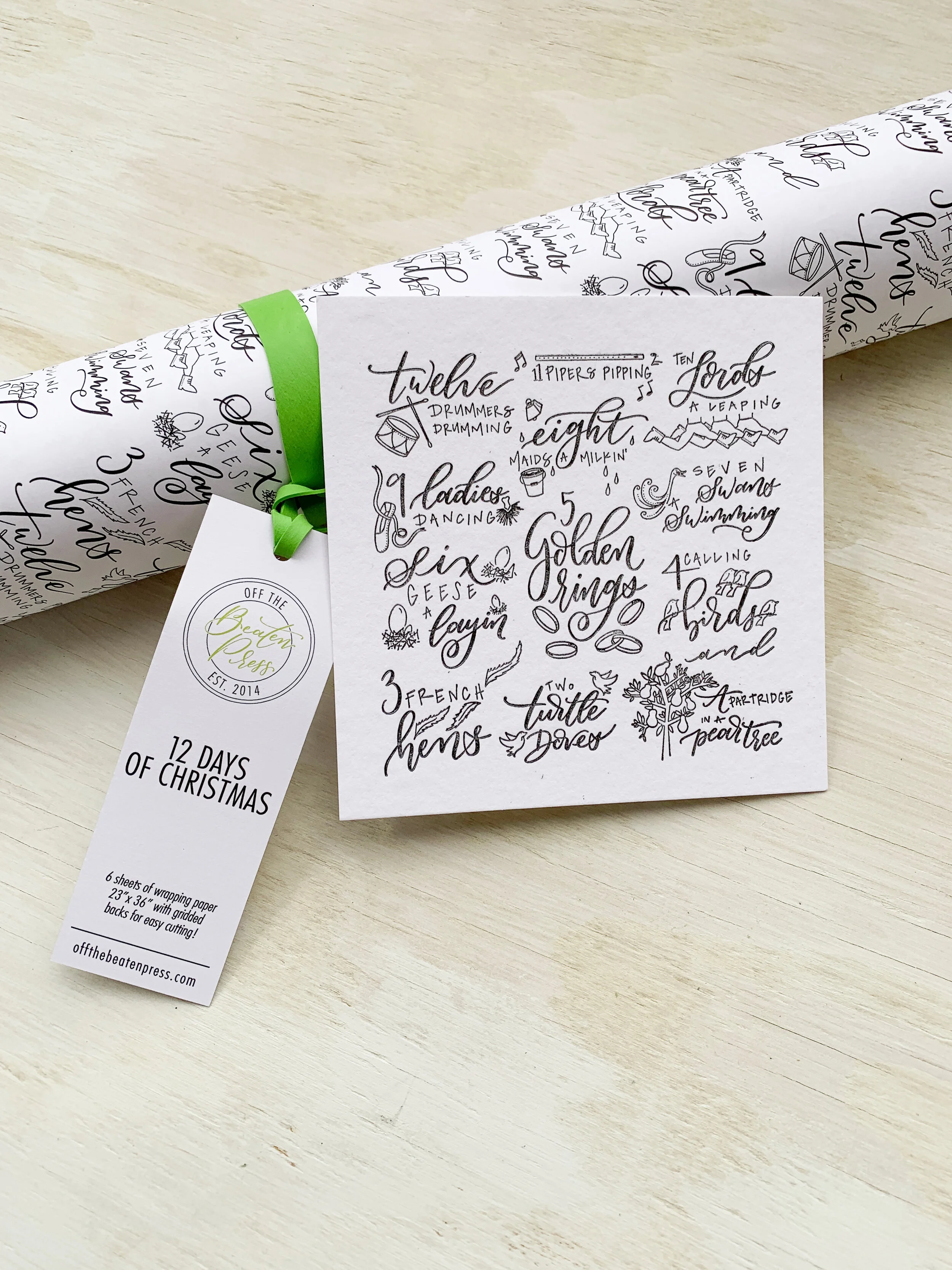 A local printing company hosts a wrapping paper contest every year. And every year, I totally forget to enter. FINALLY, in the nick of time I submitted a design. The theme was “Holiday Harmony” and two years ago, I letterpress printed some Christmas cards using the 12 Days of Christmas. You can read about the printing process of those here. I figured I would submit my design since it was already ready to go!