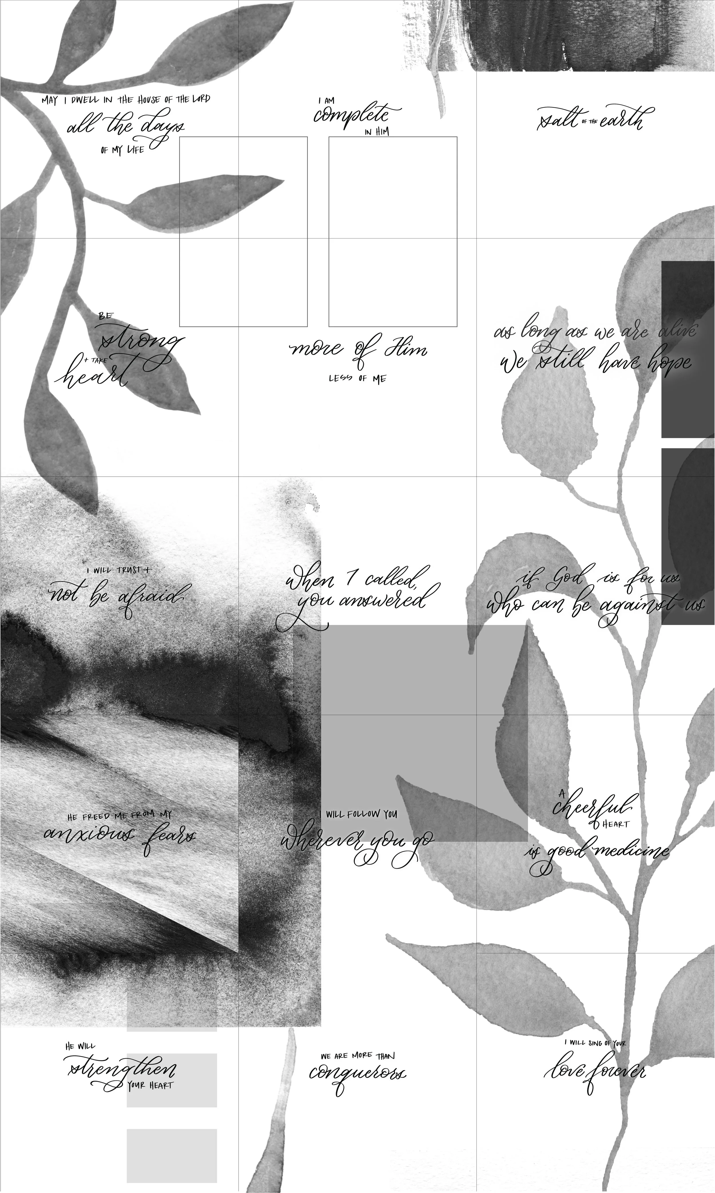 Particularly in the season we are going through, the greys felt right to me. I also love how the two that included the word “fear” fell on nearly all dark backgrounds. I don’t plan the grid out that way - it just kinda happened!