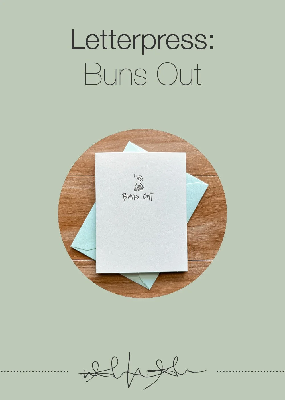 Last year for easter I made these cute little egg cards that said “Hatchy Easter.” You can see them over at this blog post. Inspired by them, I made another little round of larger A2 cards this year that say “Buns Out.”