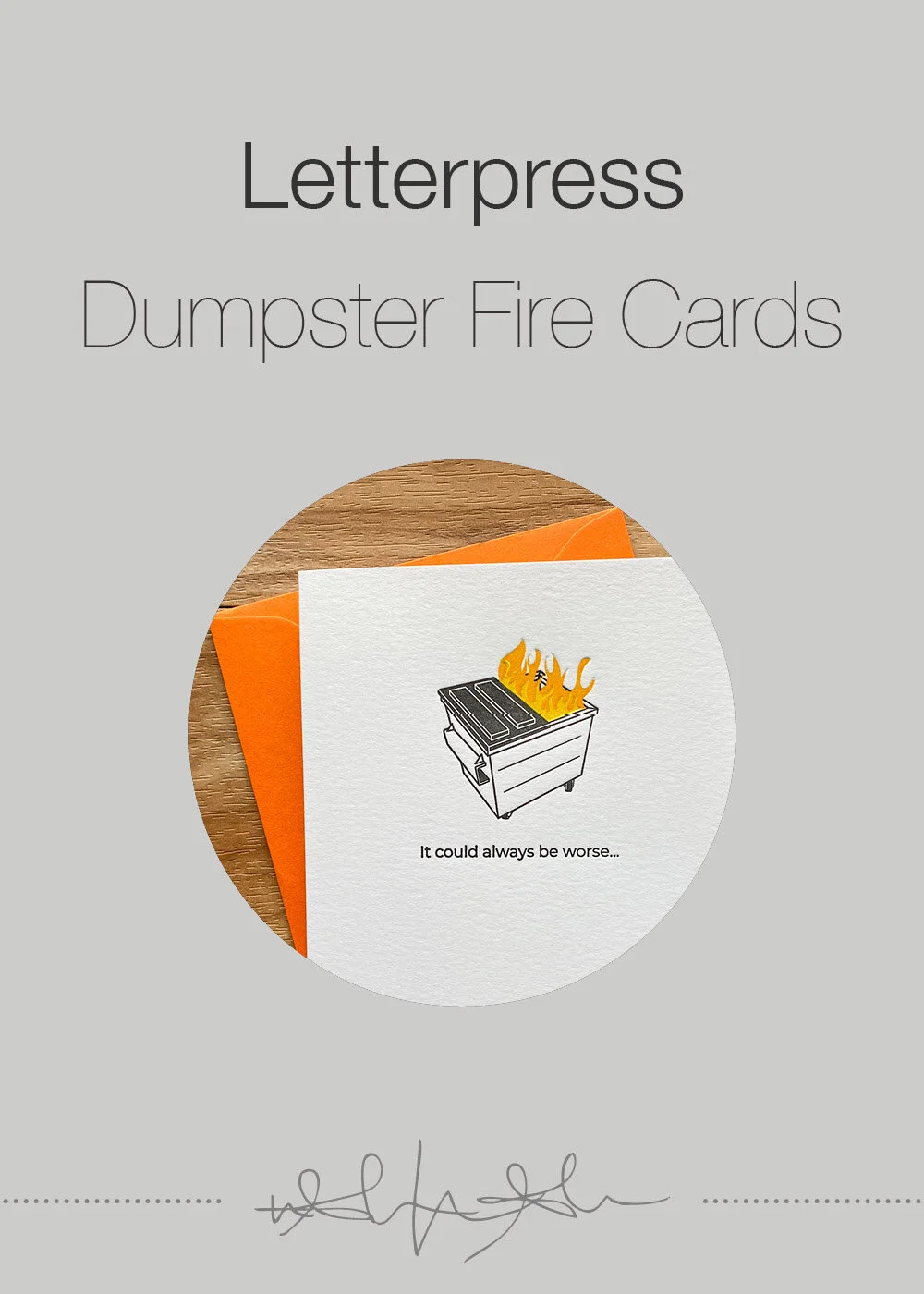 I am so excited to share these cards with you today. So dumpster fires have been a theme in 2020 before all this craziness broke out. I work full time as a product designer and my team and I always joke that our meetings derail into dumpster fires all the time. With that joke, I made us holographic dumpster fire sticker.
