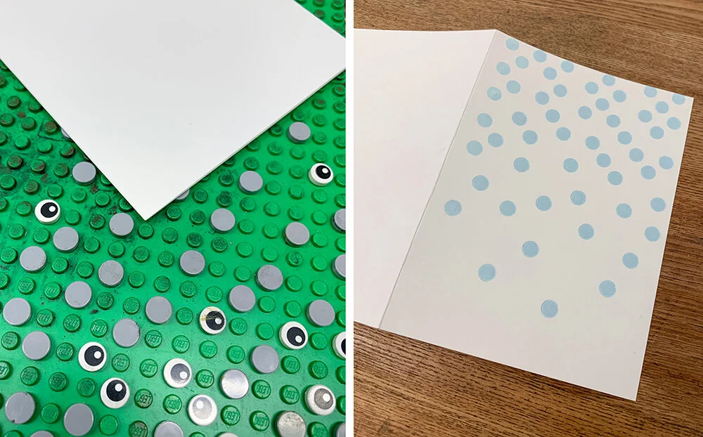 One student wanted to test out the legos we had for some “snow” themed holiday cards. I love that half the dots were little eyeballs that got coated in ink.