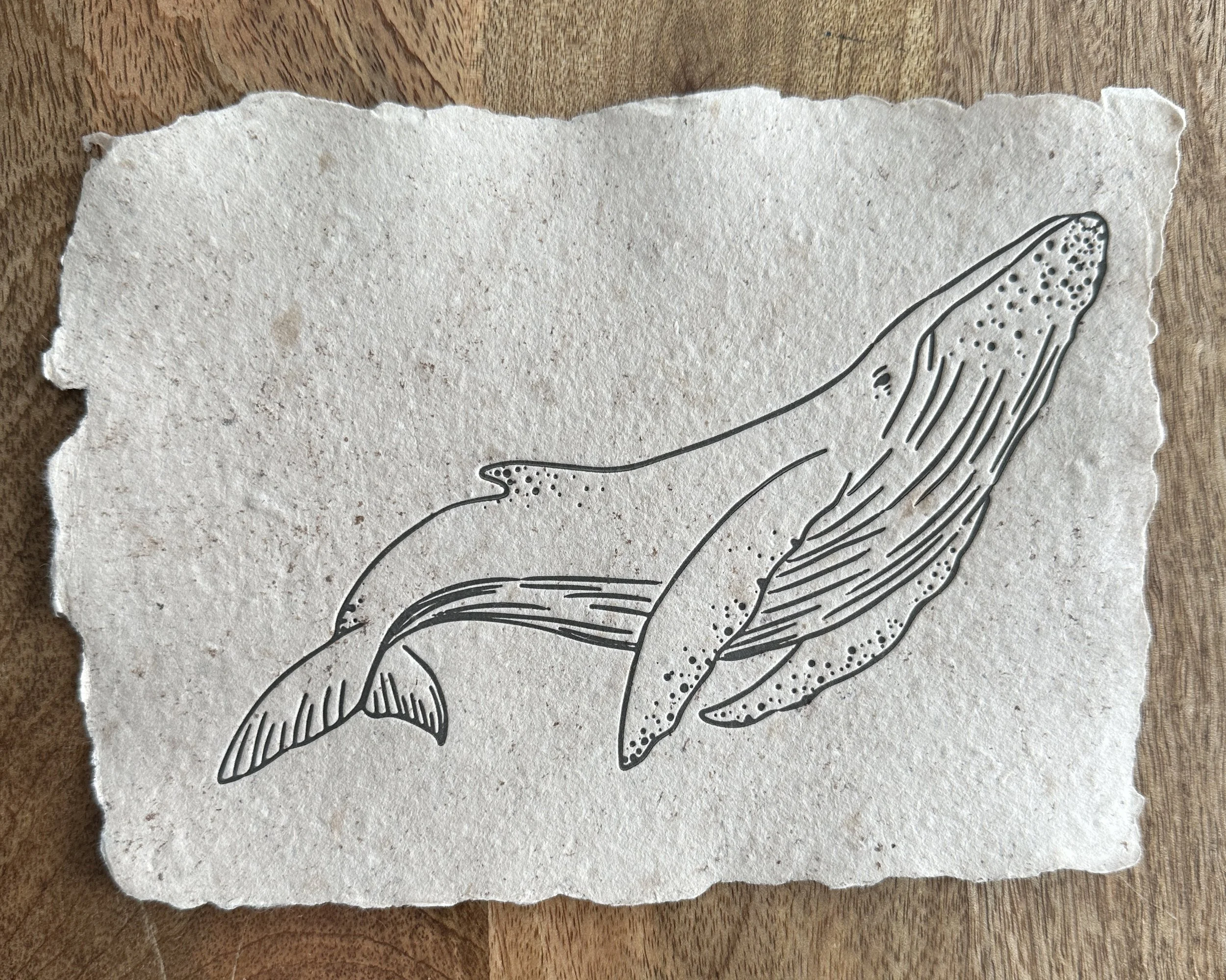 I had some extra space on an order I was doing for a client, so what a better thing to print than a whale? I had a friend who loved them and made a few on some scrap handmade paper.