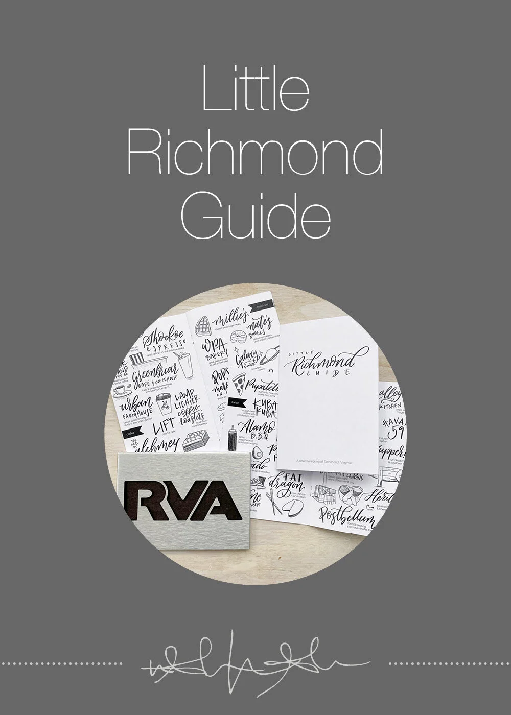 One of my side hustles is running an Airbnb in Richmond. I am always answering questions for guests about places to eat and things to do around this amazing city. And when I first moved to Richmond, I had a friend make me a map of all the places I should check out around town that I found super helpful. I thought an illustrated version of this this would be a fun way to get all these questions answered.