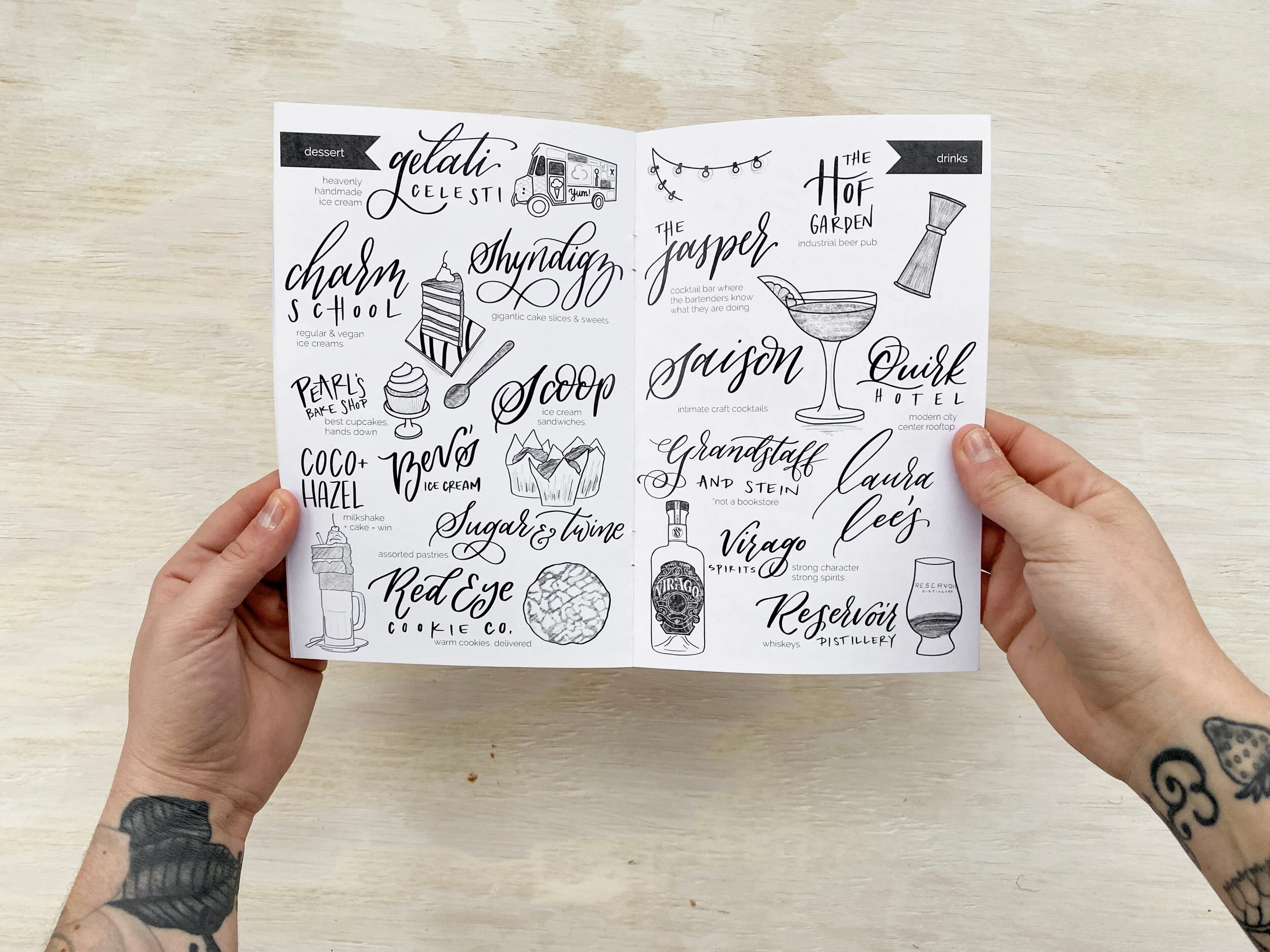 I had to remake the book at the beginning of this year because one of the restaurants featured on the dinner page had closed. I took the opportunity to split out some more pages, creating one entirely for dessert & drinks. We’ve had a few more spots open up around town that also needed some call outs.