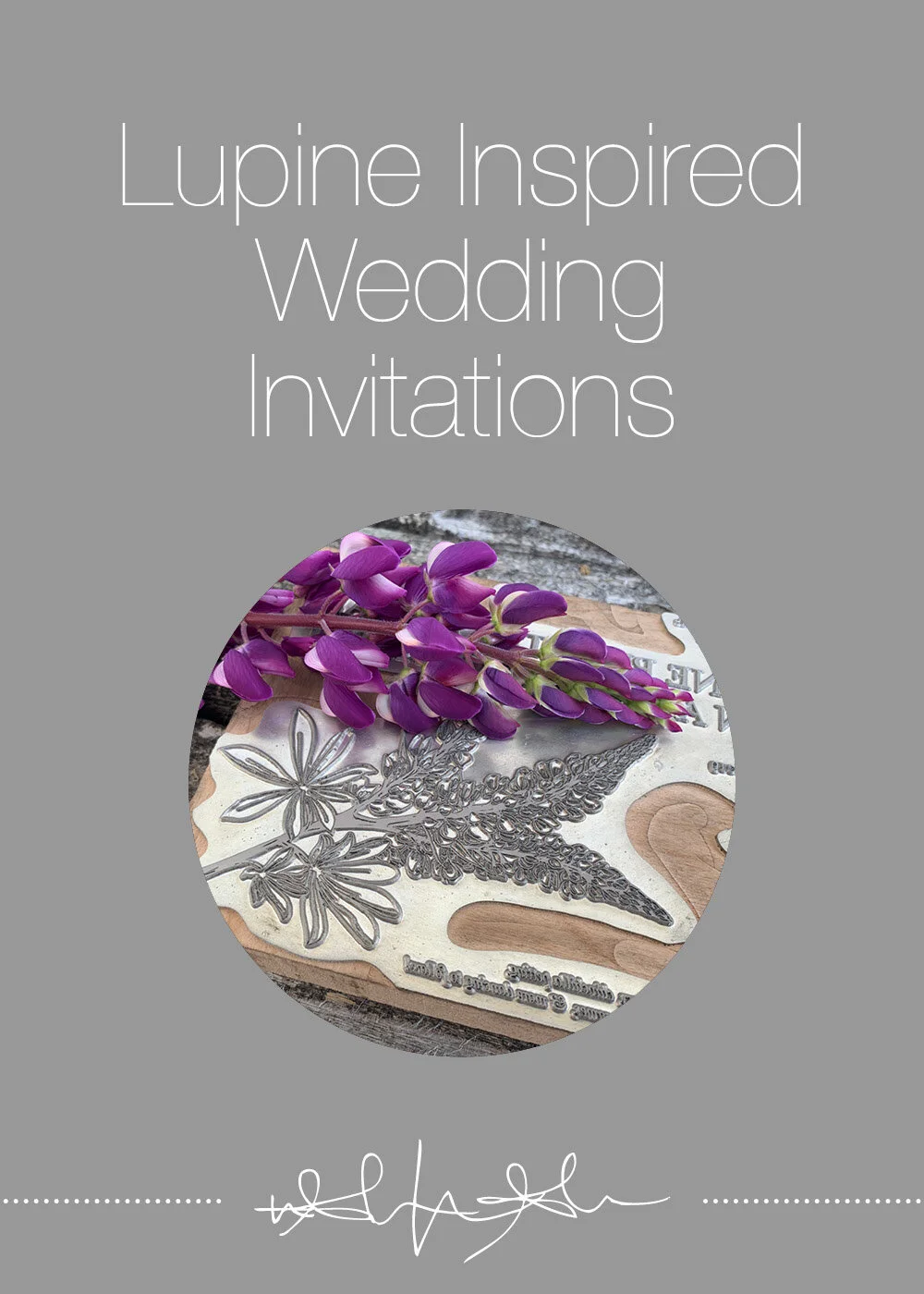 One of the invitations of mine they liked the most had floral illustrations balancing the type. We replaced the flowers from that invitation with lupines. Lupine flowers hold a special place in my heart. Whenever we are up in Canada in July the hills near our home are covered with them.