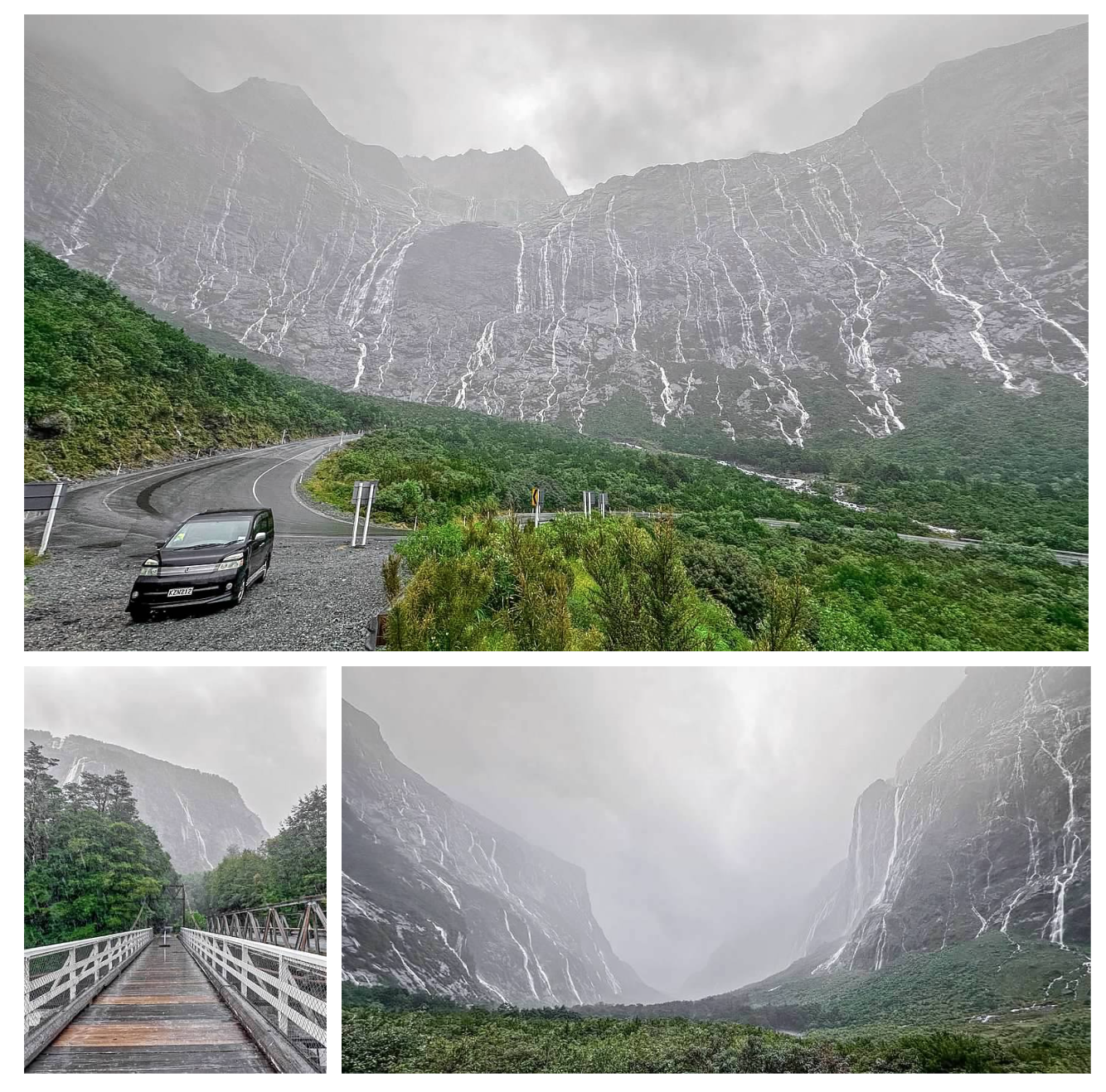 Today was all about Milford Sound. The drive alone was breathtaking—valleys, cliffs, waterfalls. The cruise through the fiord was serene and massive in scale, with mist, towering rock faces, and seals lounging on rocks. I stayed in Lumsden and ended the evening with some quiet freedom camping nearby.
