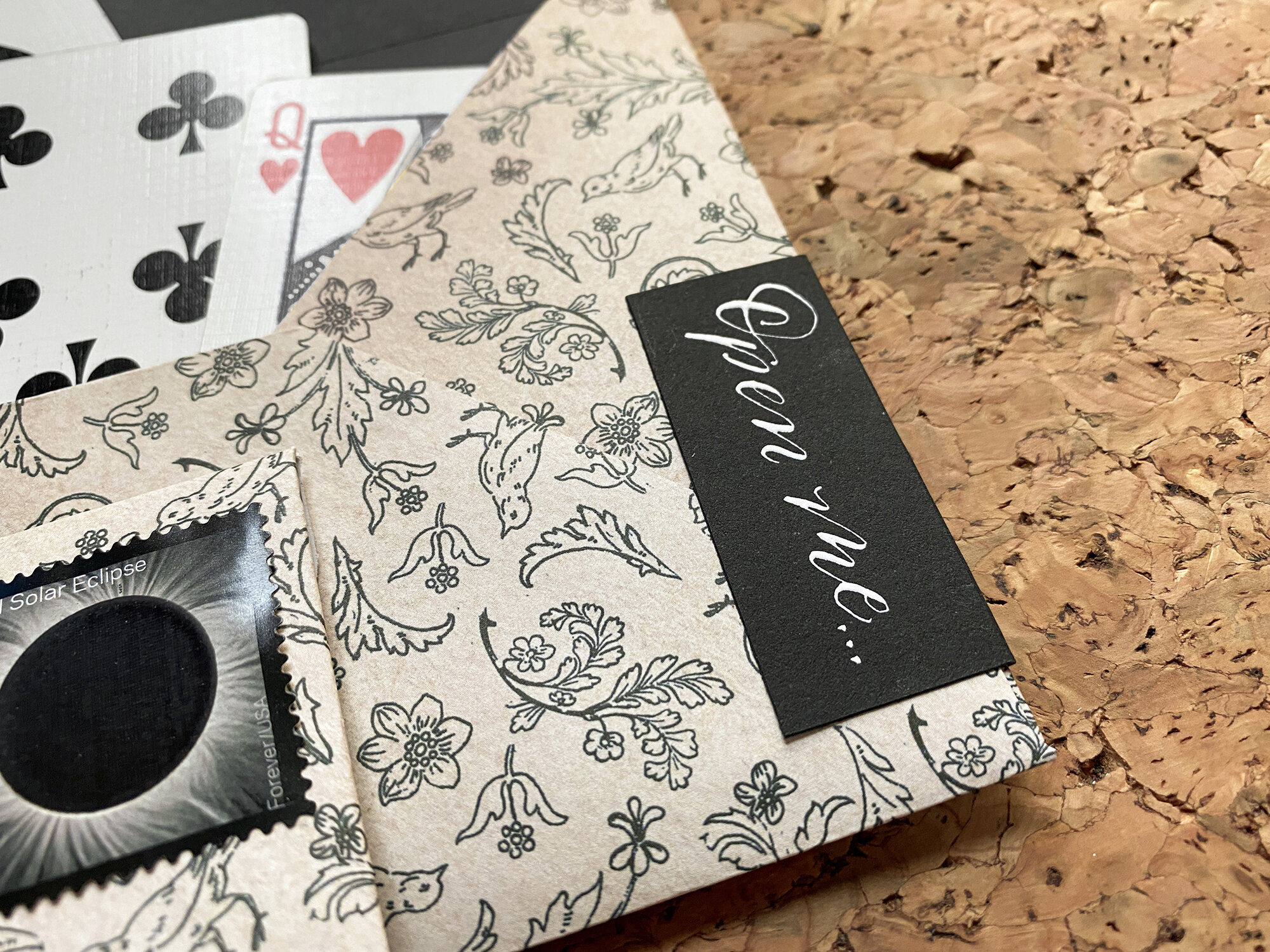 Everything feels upside down with everyone stuck at home, so I was thinking a lot about books & this quote from Lewis Carrol, “Nothing would be what it is because everything would be what it isn’t.” Doesn’t that ring so true? Running with this idea, I began to wonder what it’d be like to flip the envelope inside out.