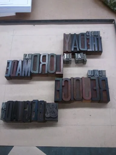 My coworker Angela had commissioned this print for her new house. I set all the type with a condensed 2 inch wood paired with a smaller 48 pt metal type. The final size for the print was 15 x 15 inches.
