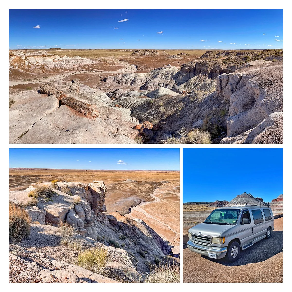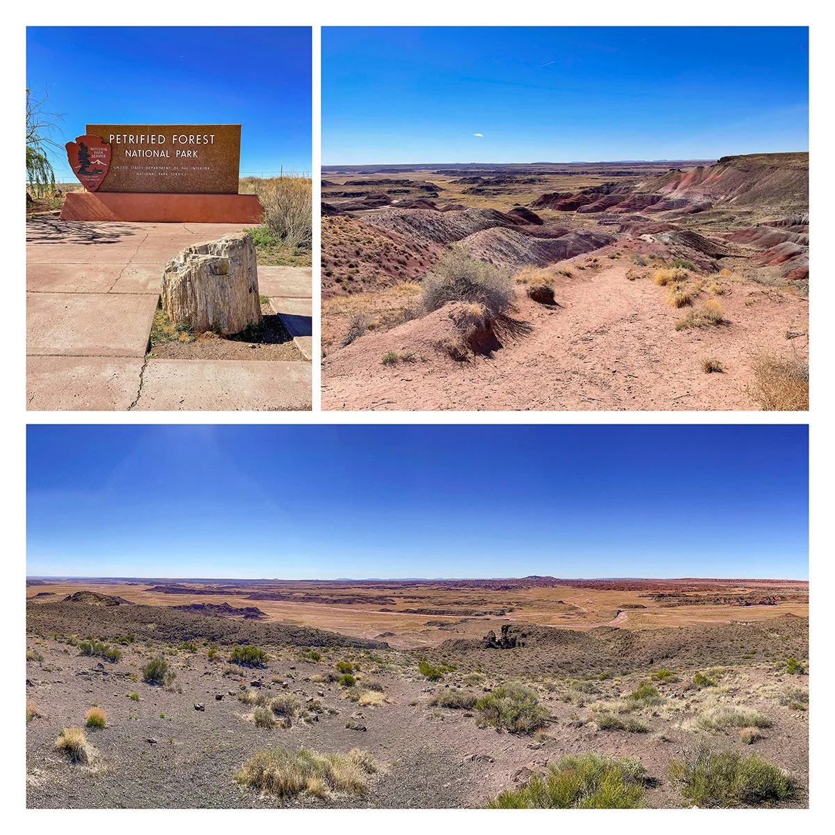 After leaving New Mexico, I cut into the top of Arizona near the Petrified Forest National Park. I drove the park from East to West along the main road.