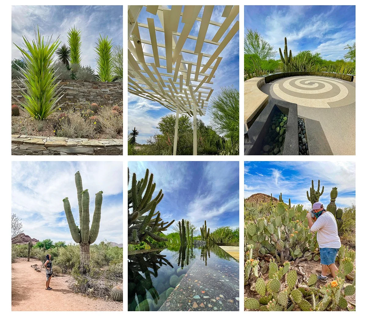 After a wander, we headed south to Phoenix. We got tickets to the Desert Botanical Gardens. This was definitely one of the better gardens I’ve been to in the US and so unique. The beginning gate opens with Chihuly sculptures that mimic cacti.