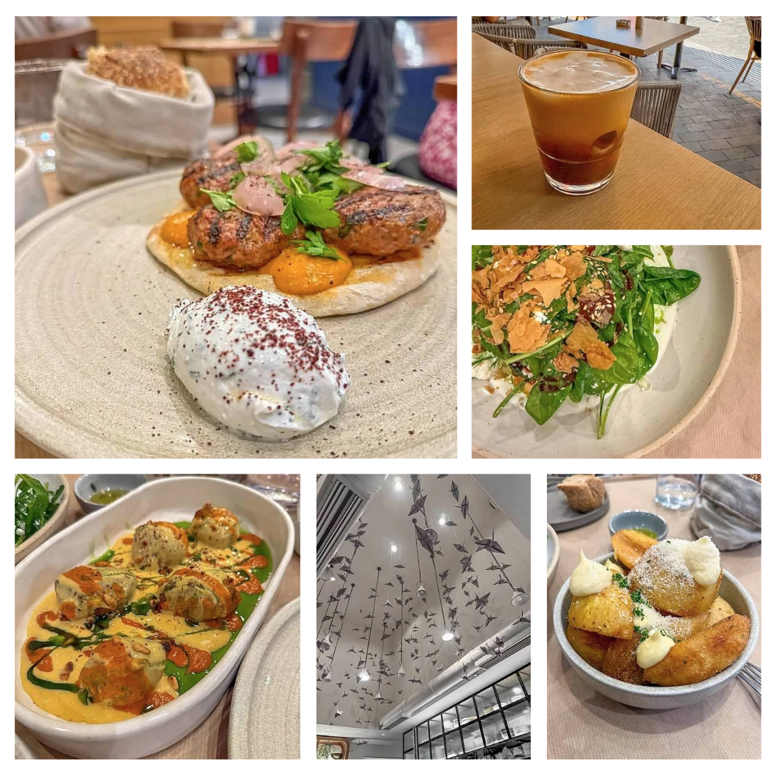 Dinner at Lyra was exactly right: burrata, pine nut salad, moussaka, meatballs, tzatziki, pita, and the Guilty Passion cocktail (vodka, ginger, prickly pear, mandarin, lime, prickly foam).