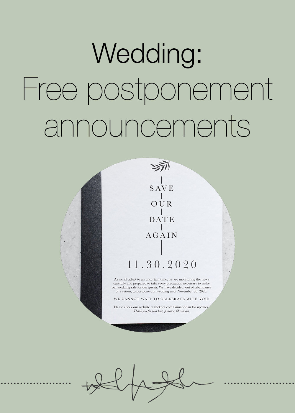 This has been a tough week for a lot of people, including those in the wedding industry. I’ve reached out to those of my clients that have been impacted by the changing world and wanted to do a little more with what I can. As a result, I am offering FREE digital wedding postponement announcements to couples impacted by Coronavirus.